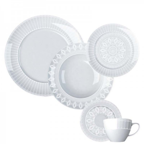 Prato Cerâmica Preto / Branco / Dourado Tamanho G